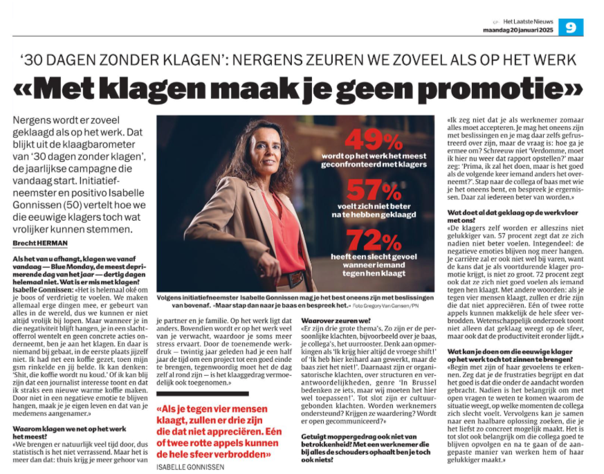 MNM - Vermelding van de 30 Dagen Zonder Klagen in de ochtendshow van 20/01/2025